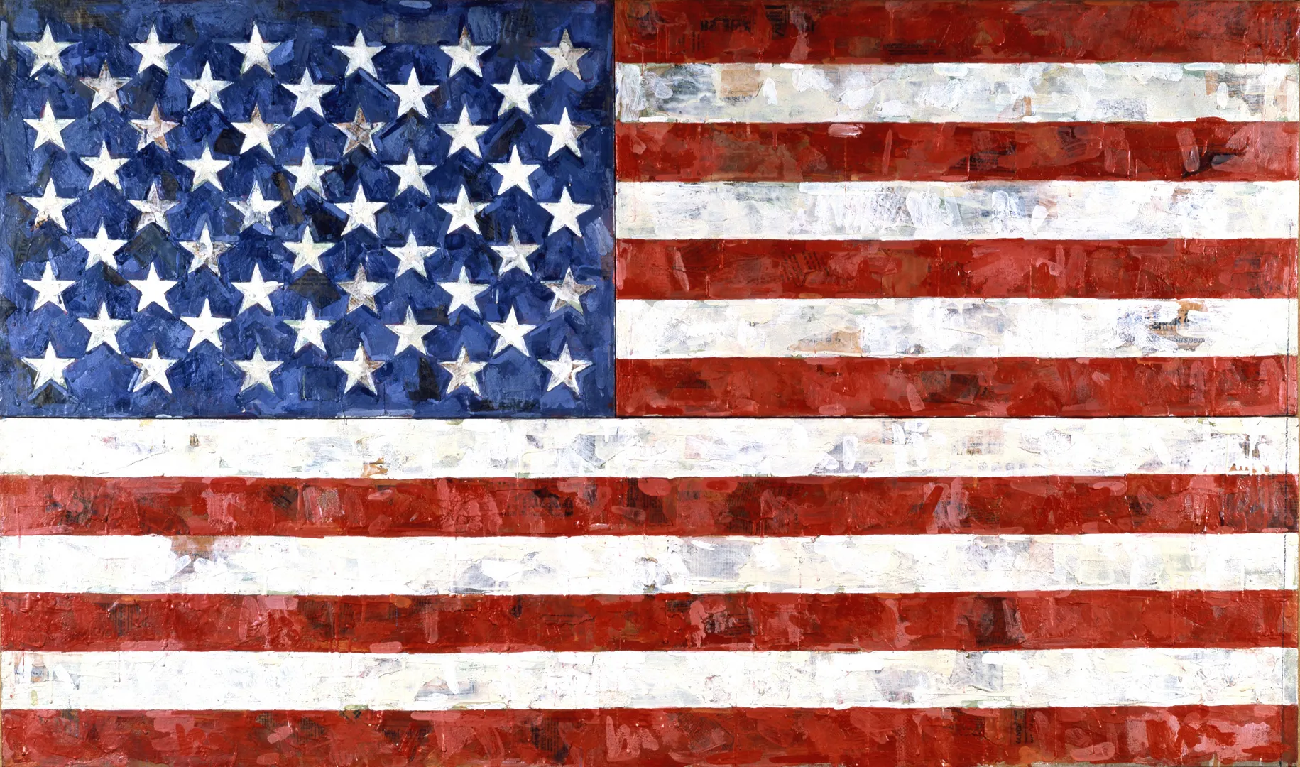 “One night I dreamed that I painted a large American flag,” Jasper Johns has said, “and the next morning I got up and I went out and bought the materials to begin it.” It is a simple origin story for a group of paintings that have become among the touchstones of recent art history. The American flag is both an abstraction of an idea and a symbol, but what does the flag become when it is painted? Is it an image of the object or the object itself? Johns’s Flag is a perceptual game, a two-step between reality and illusion that extends to the meaning of the work. Johns’s take on the flag, which began in 1954 near the start of the Cold War, is analytic, cool, and unsentimental. This version from 1967 was made during the height of the Vietnam War.