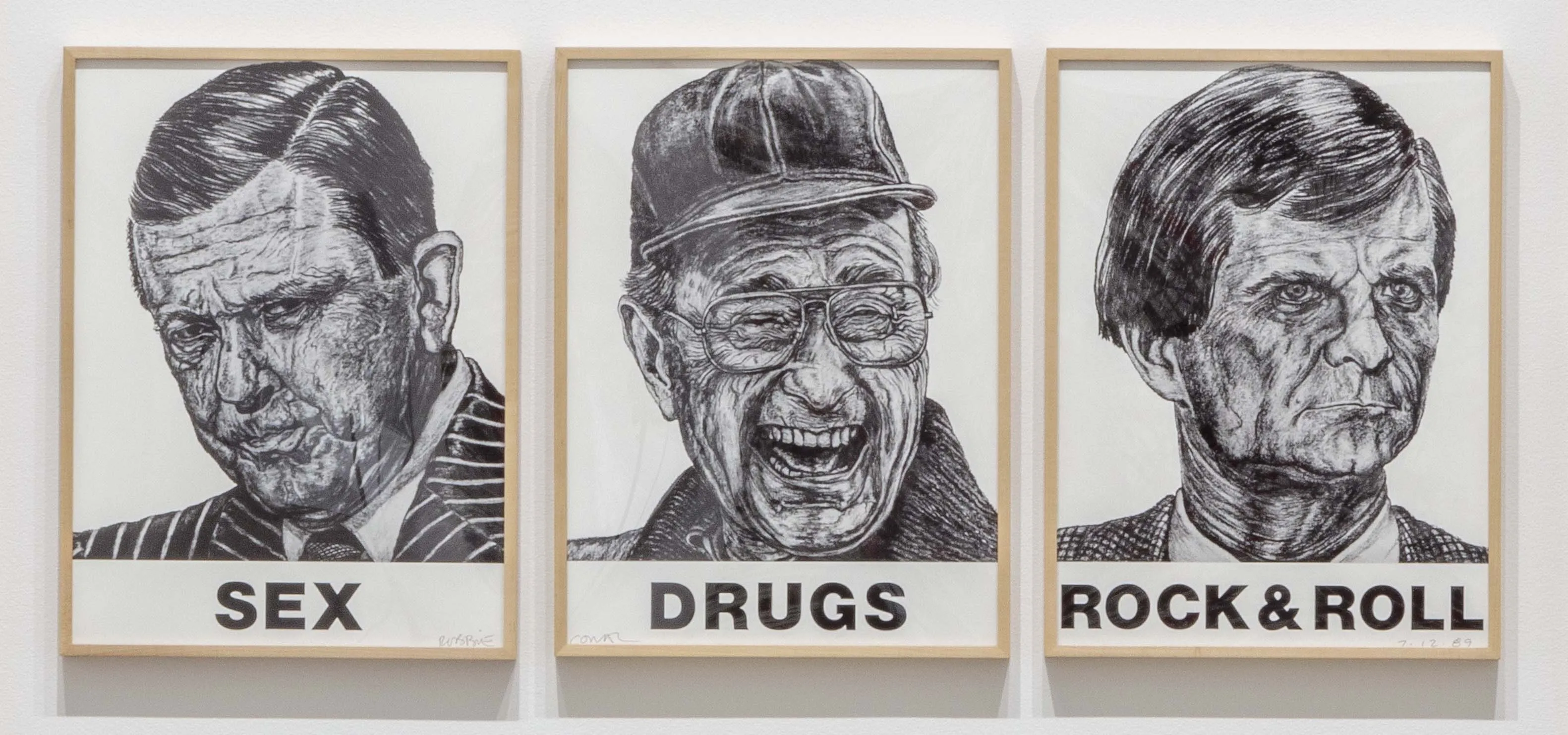 © Robbie Conal Sex, Drugs, Rock and Roll Robbie Conal Accession Date: 04/24/92 Accession Number: F-CONA-1L92.48 1989 three offset lithographic posters 24 1/4 x 18 in. (61.6 x 45.72 cm)