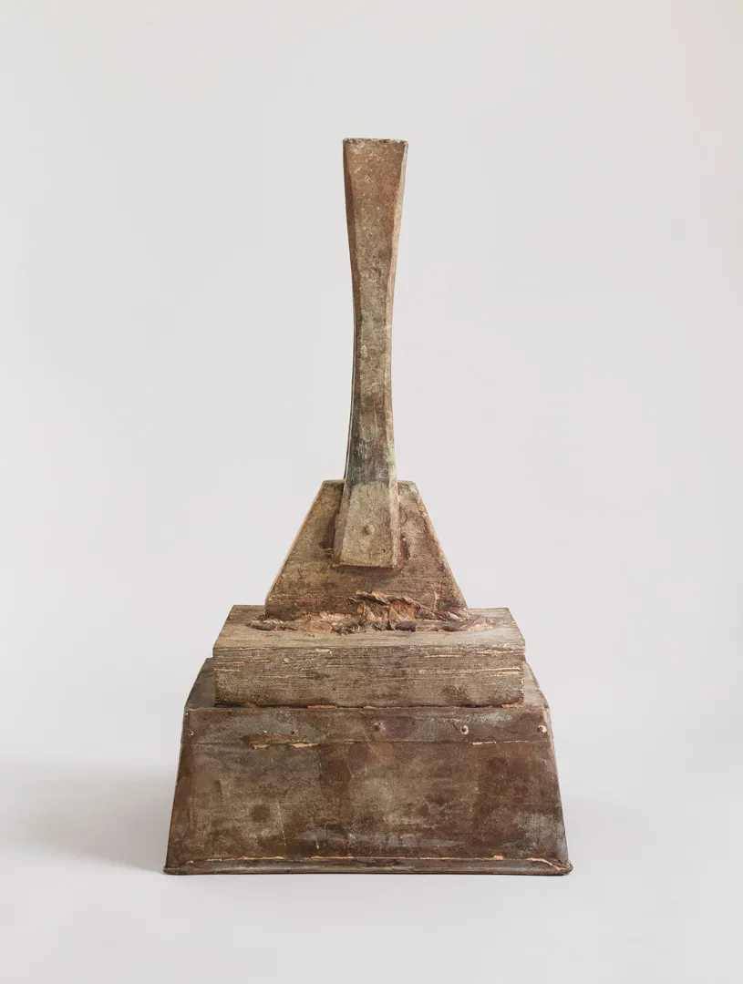 Like personal artifacts, Cy Twombly's sculptures are developed from materials collected over many years from various locations where Twombly has lived. Before cast in bronze and coated with a soft, off-white patina, found objects such as wood or metal parts are combined with clay or plaster. The sculptures often take on the surface qualities of these materials; captured in the final metal alloy is the textured grain of a piece of weathered wood or of roughly smeared plaster. Like the artist's radiant and expansive paintings, Twombly's sculptures achieve a lightness that is at once airy and luminous, belying the solidity and weight of their materials.