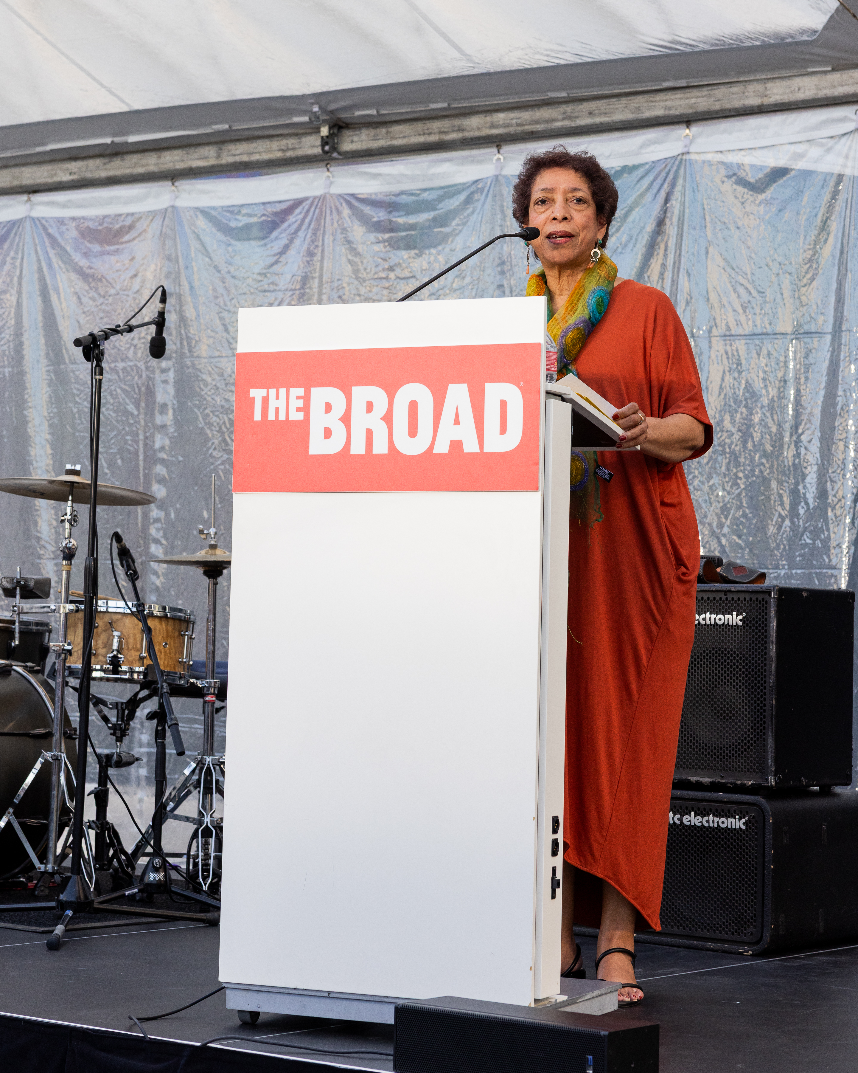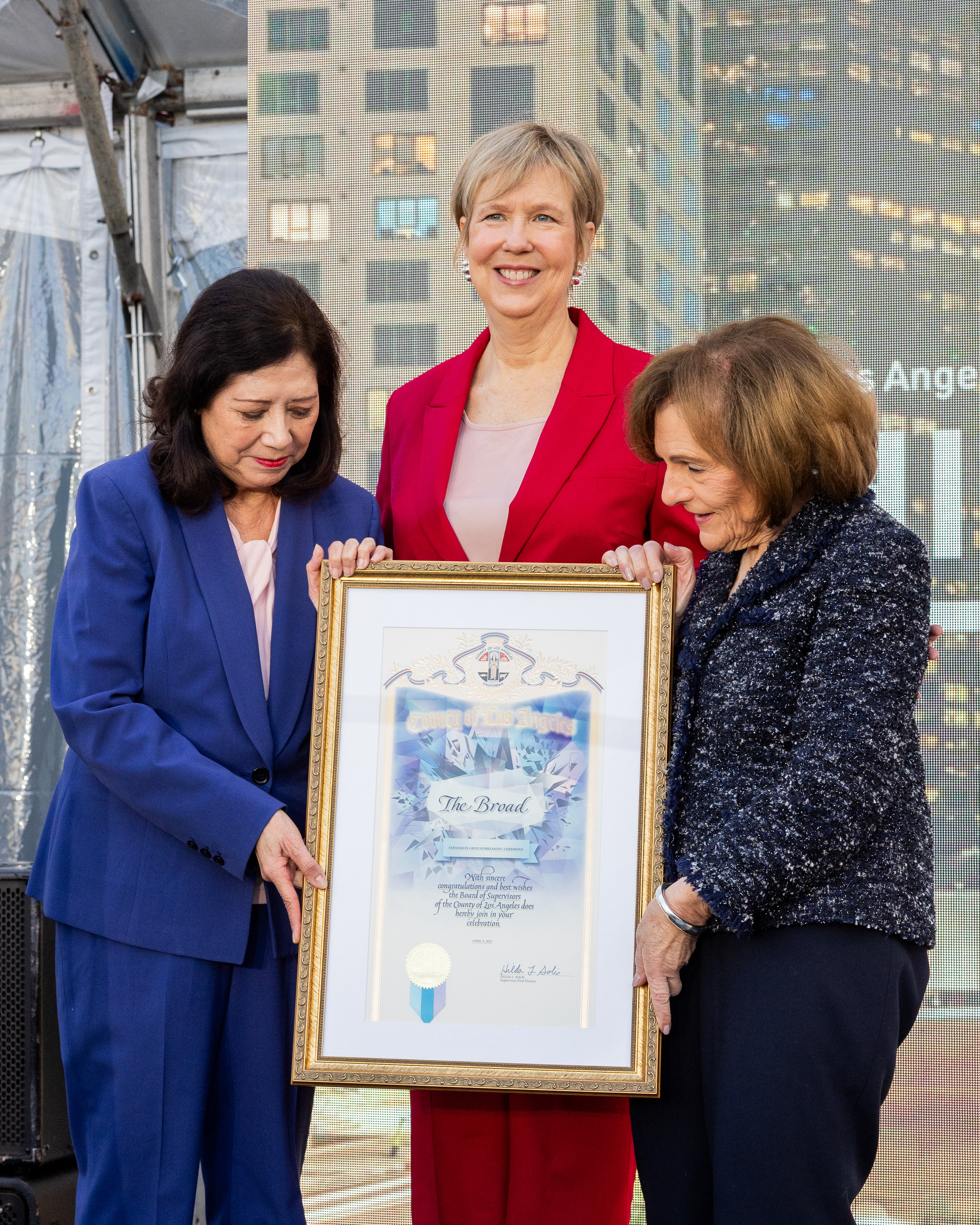 Speakers included Los Angeles Mayor Karen Bass, L.A. County Chair Pro Tem and Supervisor to the First District Hilda L. Solis, and L.A. City Councilmember Ysabel Jurado, Dominic Ng, Chairman and CEO of East West Bank, and Elizabeth Diller of Diller Scofidio + Renfro (DS+R), architects of the original Broad and the expansion. With over 170 people in attendance, the ceremony featured performances by Mariachi Arcoiris de Los Angeles and Medusa, and a poetry reading by Lynne Thompson, Los Angeles Poet Laureate Emerita, co-commissioned by The Broad and the Los Angeles Public Library.