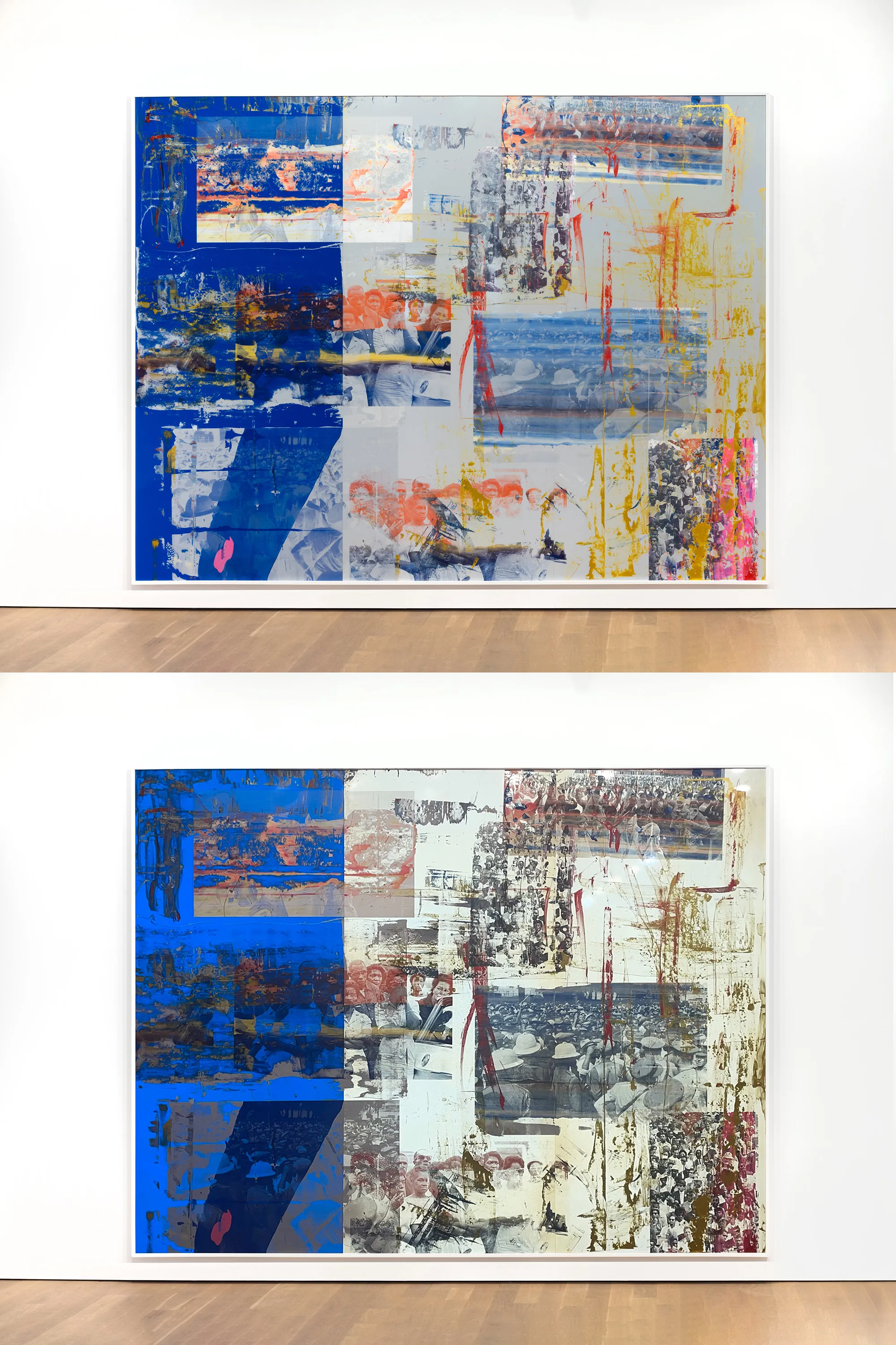 © Hank Willis Thomas (Top) No flash; (Bottom) With Flash We shall not be moved Hank Willis Thomas On View Accession Date: 10/04/22 Accession Number: F-THOH-2022.011a-c 2022 screenprint on retroreflective vinyl, mounted on 107 3/8 x 142 1/2 in. (272.73 x 361.95 cm)